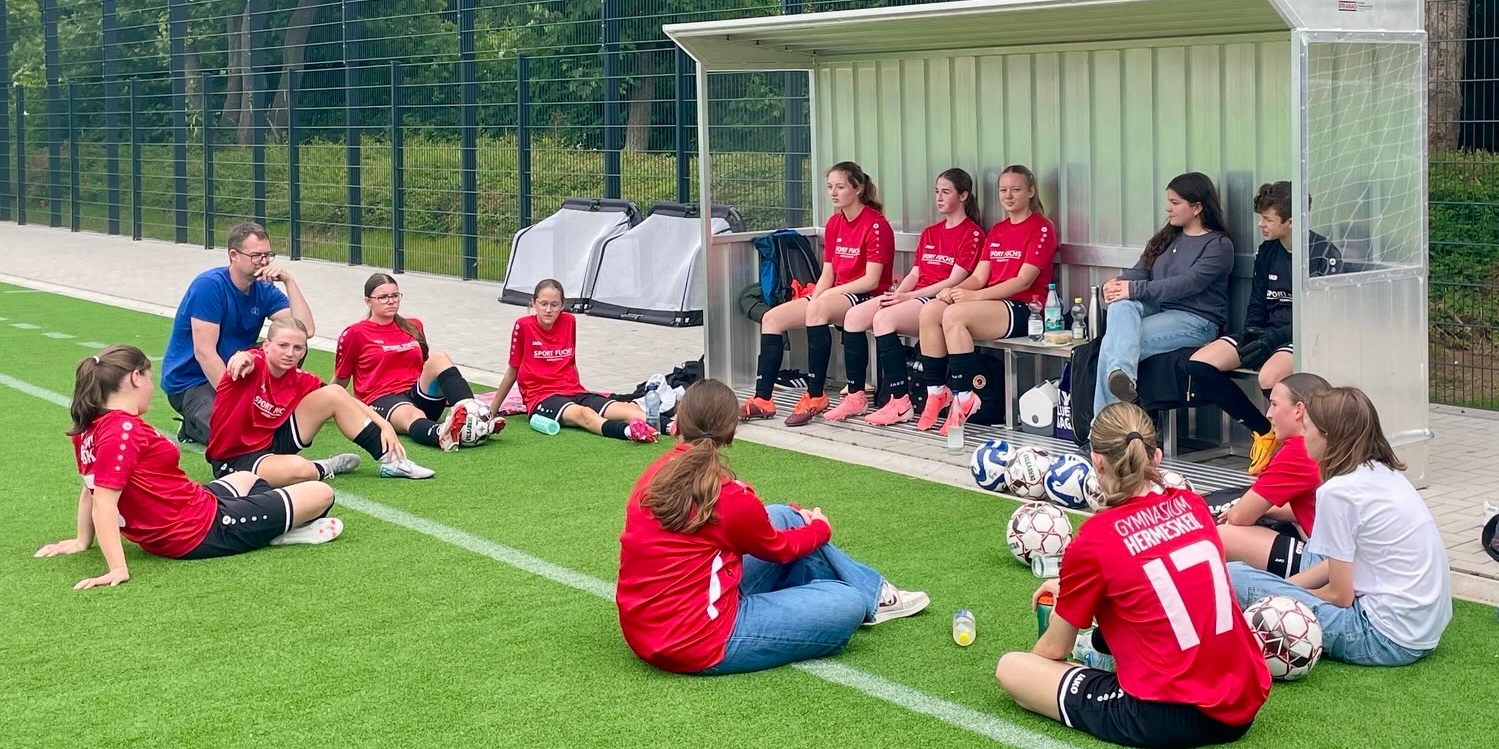 Der Losentscheid bescherte uns das zweite Spiel als Einstieg in das Turnier, welches wir gegen die Verlierer des Eröffnungsspiels, das Gymnasium am Calvarienberg, bestreiten durften. Unsere Spielerinnen zeigten eine sehr konzentrierte Leistung und ließen den Gegnerinnen kaum Platz zur Entfaltung. Mit einer verdienten 1:0-Führung, erzielt durch Annika Schön, ging es in die Halbzeitpause. In der zweiten Halbzeit hielten wir den Druck auf den Gegner hoch und konnten das 2:0 wiederum durch Annika nachlegen. Gegen Ende der zweiten Halbzeit kam die gegnerische Mannschaft zum etwas überraschenden Anschlusstreffer, jedoch konnten Annika mit einem schönen Distanzschuss den alten Abstand wieder herstellen, womit das Spiel 3:1 für das GymHerm endete.