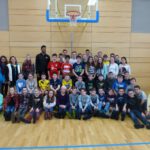 Zwei Spieler der Gladiators Trier besuchen die Klasse 8 a des Gymnasiums Hermeskeil Hermeskeil. Die Schülerin Hannah Paege aus der 8 a berichtet über dieses Ereignis, das für die Jungen und Mädchen ein echtes Erlebnis war: “Als wir die Turnhalle betraten, waren Simon Schmitz und Dwayne Evans schon da, und nachdem wir schnell ein Gruppenfoto