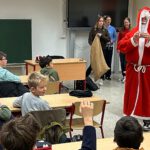 Bereits am Morgen des Nikolaustags bescherte der Weihnachtsmann (als Vertretung für den vielbeschäftigten Nikolaus), begleitet von Schülerinnen der SV, den Schülerinnen und Schülern aller Klassenstufen am Gymnasium Hermeskeil eine Freude. Im Vorfeld konnten Schokoladenweihnachtsmänner bei der SV vorbestellt und an eine auserwählte Person versendet werden. Es bestand dabei die Möglichkeit, die Schokofiguren mit dem Namen