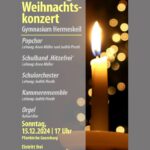 Weihnachtskonzert des Gymnasiums Hermeskeil in Gusenburg Das diesjährige traditionelle große Weihnachtskonzert des Gymnasiums Hermeskeil findet am Sonntag, dem 15.12.2024 um 17 Uhr in der Pfarrkirche Gusenburg statt. Zum weihnachtlichen abwechslungsreichen Programm tragen verschiedene Ensembles der Schule bei. So werden die Schulband „Hitzefrei“ und der Pop-Chor das Publikum mit ihrem Gesang und ihrer Performance erfreuen, das