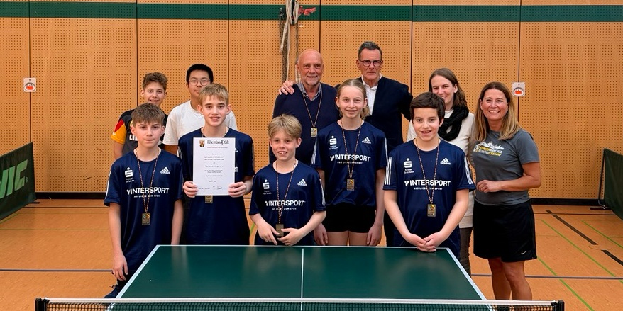 Am Dienstag, den 14. April 2026, wurde die Sporthalle in Hermeskeil zum Schauplatz hochklassiger Schulduelle: Beim Landesturnier Tischtennis der Altersklasse U14 im Wettbewerb „Jugend trainiert für Olympia“ trat unsere Schule mit einer engagierten gemischten Mannschaft an. Für die Schule gingen Silas Jaeger (7b), Jakob Lutz (6b), Maximilian Weber (6d), Nele Kaufmann (7a) und Henry Johann (6d) an die Tische.